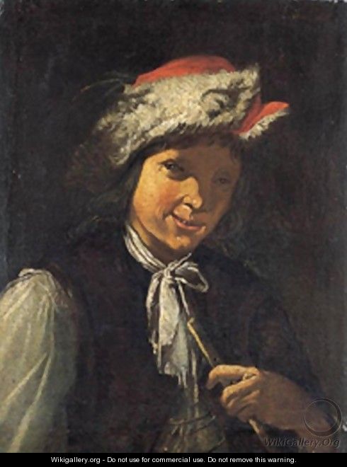 - Boy with a Recorder, oil on canvas, 61.9 × 49.4 cm, follower of Giuseppe Maria Crespi (1665–1747). Buscott Park: The Faringdon Collection, Cat. No. 61. Ref. Merriman (1980: No. 212); Spike et al. (1986: 32, fig. 21). A youth sitting at a table leans on his elbow, his right hand holding a recorder (only the head of which is visible). His other hand turns a page of music before him. Engraved By Pietro Monaco for Algarotti, as Daviddo fuggitivo (see below). The pendant to this picture, of a Man Wearing a Helmet (thus making a pair, of the Active and Contemplative Life), is in the William Rockhill Nelson Gallery of Art, Kansas City (Merriman, loc. cit, No. 211).