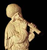 - [Recorder Player wearing a Turban] (? date), stone relief, ? provenance, ? artist. A man wearing a turban-like hat and jerkin with crenulate sleeves plays a flared recorder, the window/labium and fingering clearly depicted.