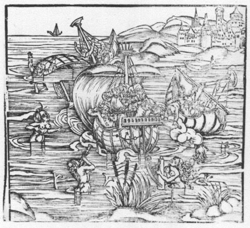 - Sirens (? 16th century), ? artist and/or provenance. Collection René Clemencic. Ref. Clemencic (1968: 7: fig. 2). Depicts the Sirens luring ships ashore. One siren standing in the water plays a flared bell duct flute the window/labium of which is clearly shown.